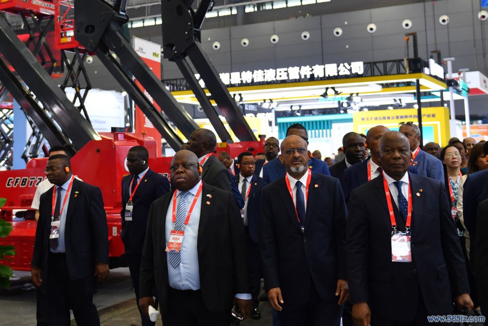 5月15日,非洲驻华使节代表团参观第四届长沙国际工程机械展览会。新华社记者 陈振海 摄